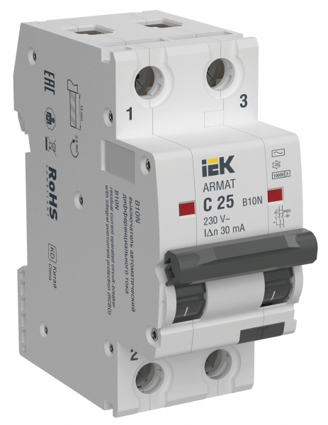 Дифференциальный автомат АВДТ B10N 25A/30мА (хар-ка C, тип AC, эл-мех) 10кА ARMAT IEK /6
