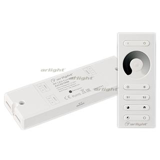 Однозонный диммер, комплект из пульта RF (868MHz) с сенсорным кольцом и контроллера 12-24 В, 1х10А, 120-240 Вт. Белый корпуc. Размеры пульта 120x48x17 мм, контроллера 145х46х16 мм.