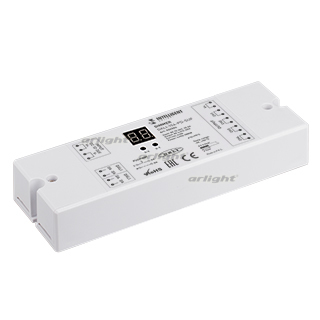 Мощный DALI диммер на 4 адреса, для одноцветных или RGBW светодиодных лент, 4 асинхронных канала. Управляется сигналом DALI или кнопками PUSH DIM. Питание/выход 12-36 VDC. Высокая частота ШИМ 1500Гц. Макс.ток 4x8A. Размеры 168x58x28 мм.
