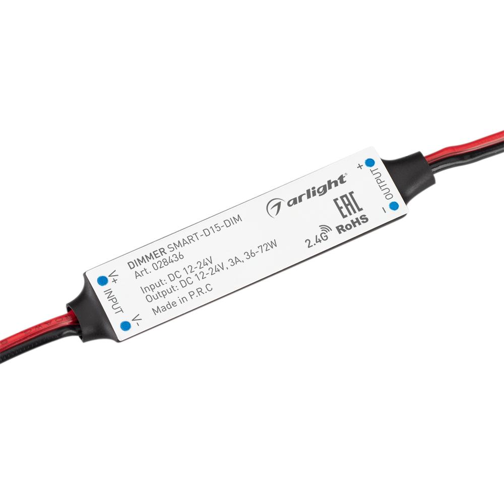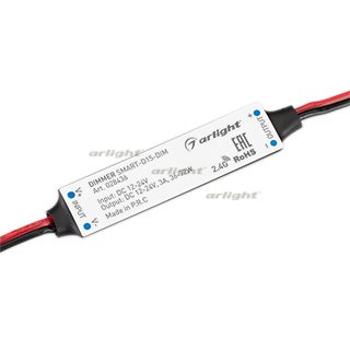 Миниатюрный диммер для монохромной светодиодной ленты (ШИМ). Питание/рабочее напряжение 12-24VDC, максимальный ток 3A на канал, 1 канал, максимальная мощность 36-72W. Габариты 60x14x6 мм (габариты проводов 91x4x2 мм). Совместим с пультами и панелями SMART, поддерживающими диммирование по радиоканалу. ...Актуальная схема привязки пультов в инструкции на сайте...