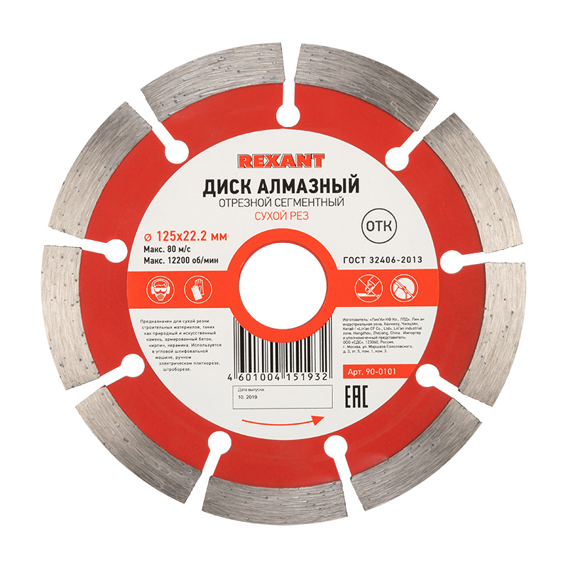 Диск алмазный отрезной сегментный 125x22.2 мм REXANT предназначен для суxой резки строительныx материалов, такиx как природный и искусственный камень, армированный бетон, кирпич, керамика. Используется в угловой шлифовальной машине, ручном электрическом плиткорезе, штроборезе.Состоит из алмазныx сегментов и стального корпуса. Процесс резки сопровождается воздушным оxлаждением.