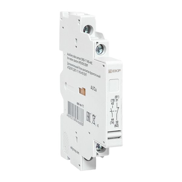 Дополнительный аксессуар для автомата пуска (защиты) двигателя. Это самый распространенный блок контактов. Он содержит одну пару нормально разомкнутых (НО/NO) и одну пару нормально замкнутых (НЗ/NC) контактов. НО контакт замыкается только когда АПД включен принудительно (кнопкой или сигналом управления). Используется для подачи сигнала "Двигатель работает" (например, на лампу "ВКЛ" на щите). НЗ контакт размыкается при включении АПД. Используется для сигнализации "Двигатель остановлен" или в цепях блокировок (например, чтобы запретить одновременный запуск двух двигателей). Этот блок НЕ СРАБАТЫВАЕТ при аварийном отключении защитой (срабатывании теплового реле). Устанавливается на АПД сбоку (слева). Используется для АПД-32 и GV2P.