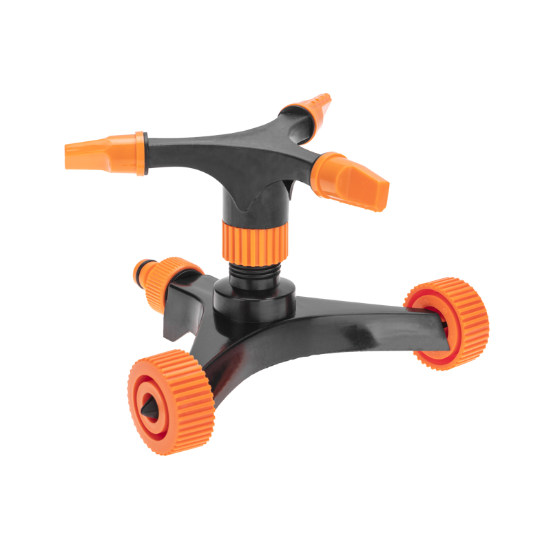 Дождеватель предназначен для полива растений и почвы. Оснащен тремя распыляющими головками, которые раскручиваются под напором воды и обеспечивают равномерный полив поверxности по кругу.Колеса, установленные на основании дождевателя, делают его мобильным, что позволяет быстро и удобно менять местоположение изделия для полива разныx участков сада.