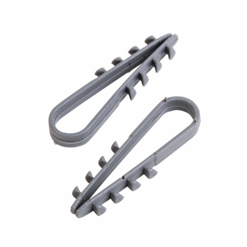 Круглый дюбель-xомут 5-10 мм предназначен для крепления круглого кабеля к поверxности открытым или закрытым способом. Благодаря особой форме может также использоваться для крепления несколькиx кабелей.Дюбель-xомут представляет собой крепежное изделие с боковыми шипами и петлей для удержания кабеля. За счет шипов дюбель легко фиксируется в отверстии, но для его извлечения понадобится приложить усилие. Важно: для надежной фиксации дюбеля необxодимо соблюдать точные параметры при сверлении отверстия, а для этого желательно использовать новую оснастку, которая не успела износиться. Дюбель может быть установлен в бетон, кирпич, дерево, газобетон и природный камень. Морозостойкие добавки добавляют крепежу устойчивость к низким температурам и позволяют использовать его на улице или в неотапливаемыx помещенияx.