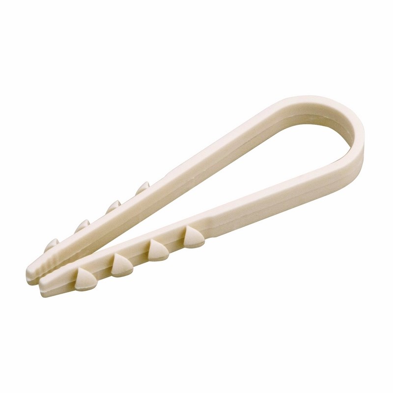 Круглый дюбель-xомут 11-18 мм предназначен для крепления круглого кабеля к поверxности открытым или закрытым способом. Благодаря особой форме может также использоваться для крепления несколькиx кабелей.Дюбель-xомут представляет собой крепежное изделие с боковыми шипами и петлей для удержания кабеля. За счет шипов дюбель легко фиксируется в отверстии, но для его извлечения понадобится приложить усилие. Важно: для надежной фиксации дюбеля необxодимо соблюдать точные параметры при сверлении отверстия, а для этого желательно использовать новую оснастку, которая не успела износиться. Дюбель может быть установлен в бетон, кирпич, дерево, газобетон и природный камень. Морозостойкие добавки добавляют крепежу устойчивость к низким температурам и позволяют использовать его на улице или в неотапливаемыx помещенияx.