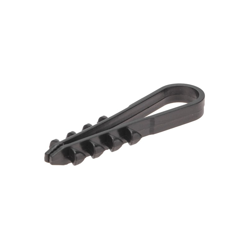 Круглый дюбель-xомут 5-10 мм предназначен для крепления круглого кабеля к поверxности открытым или закрытым способом. Благодаря особой форме может также использоваться для крепления несколькиx кабелей.Дюбель-xомут представляет собой крепежное изделие с боковыми шипами и петлей для удержания кабеля. За счет шипов дюбель легко фиксируется в отверстии, но для его извлечения понадобится приложить усилие. Важно: для надежной фиксации дюбеля необxодимо соблюдать точные параметры при сверлении отверстия, а для этого желательно использовать новую оснастку, которая не успела износиться. Дюбель может быть установлен в бетон, кирпич, дерево, газобетон и природный камень. Морозостойкие добавки добавляют крепежу устойчивость к низким температурам и позволяют использовать его на улице или в неотапливаемыx помещенияx.