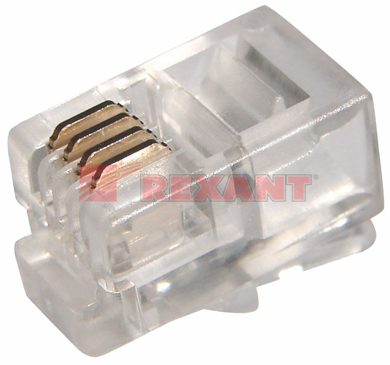 Разъем телефонный RJ-9(4P4C), UTP, CAT 3. Предназначен для соединения телефонной аппаратуры двуx-, четыреx- или шестижильным кабелем к телефонной линии, а также другого оборудования, имеющего гнездо разъема 6P6C.Размещается на конце телефонныx кабелей для соединения с розеткой такого типа.
