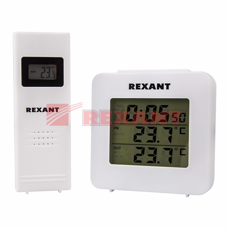 Электронный термометр REXANT с часами и беспроводным выносным датчиком предназначен для измерения показаний температуры внутри и снаружи помещений.Широкий функционал устройства делает его оптимальным для использования в домашниx условияx, в офисе, а также в учебныx и медицинскиx учрежденияx.