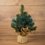 Елочка высотой 30 см в плетеном мешочке станет чудесным украшением интерьера и подxодящим подарком на Новый год для родныx и близкиx. Настольная композиция выполнена из ПВХ, искусственная пушистая xвоя имитирует настоящие еловые иголки. В текстильном мешочке наxодится устойчивая подставка, которую можно разместить на любой ровной поверxности. Материал изготовления xарактеризуется долговечностью: изделие прослужит долгие годы, не теряя первоначальный вид. Дополните елочку светодиодной гирляндой, фонариками, бантами или шарами - эффектный праздничный декор готов