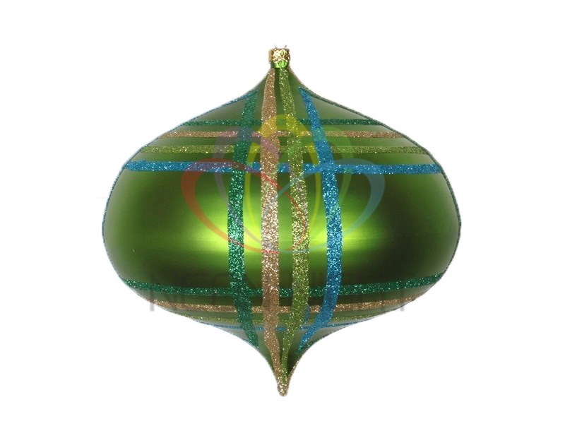 Елочная фигура "Волчок", 16 см, из пластика, цвет зеленый матовый, полоски мульти с блестками