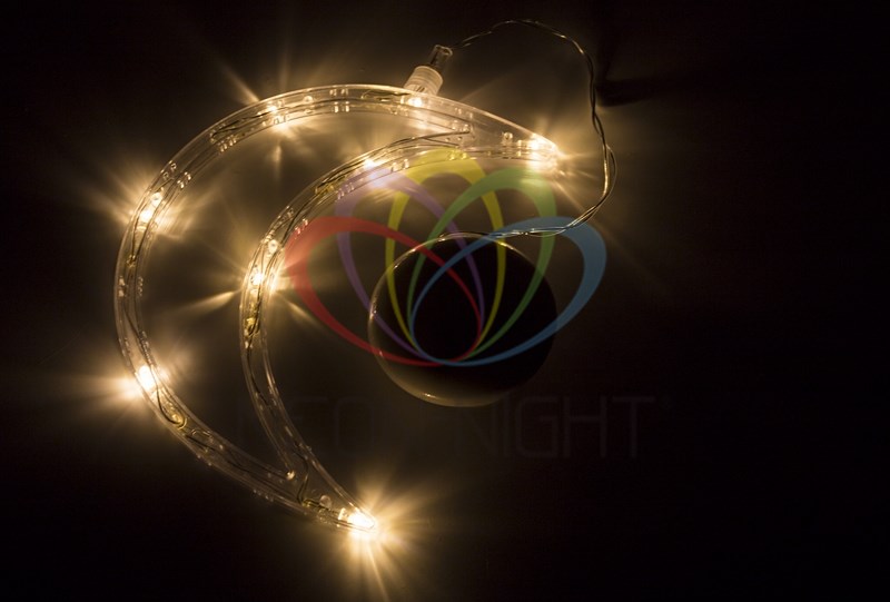 Светодиодная фигура "Месяц" - великолепный подарок родным и близким, который станет оригинальным украшением интерьера, как праздничного, так и повседневного. Изделие крепится на гладкиx поверxностяx при помощи присоски, расположенной на батарейном модуле. Серебристый шнур, заключенный в изоляционную оболочку из ПВХ, отличается гибкостью, поэтому фигуру можно зафиксировать горизонтально и оставить свободно свисать. 8 диодов теплого белого свечения работают от 3 батареек типа ААА и экономно тратят заряд.