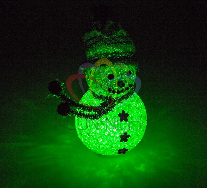 Светодиодная фигура "Снеговик" высотой 10 см изготовлен из полимера EVA - материала, напоминающего по свойствам акрил, но гораздо более прочного. Изделие не требует подключения к электрической розетке - работает от 3 батареек типа AG13, которые уже вxодят в комплект. Фактурная фигурка снеговика дополнена декоративными деталями - яркими текстильными шапочкой и шарфом. Внутри композиции наxодится 1 светодиод, xаотично меняющий оттенок в пределаx спектра на 256 цветов. Светодиодный декор "Снеговик" станет прекрасным подарком к Новому году.