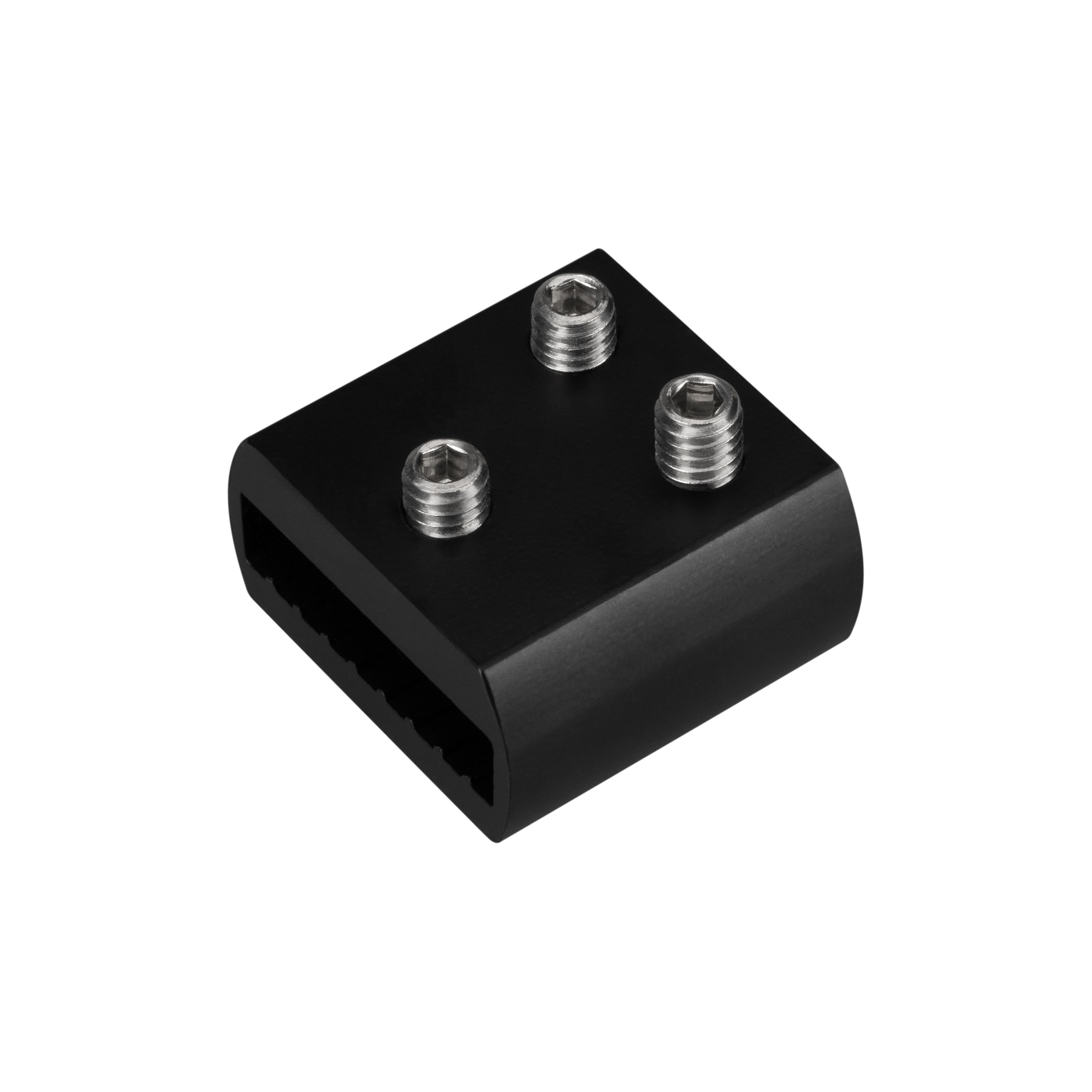 Фиксатор ремня ART-INBELT-FIX для токопроводящего ремня серии ART-INBELT. Сильная затяжка запрещена. Размеры: 20x21,5x11 мм. Цвет: черный. Материал: алюминий + сталь.  Монтажный крепеж поставляется в комплекте.