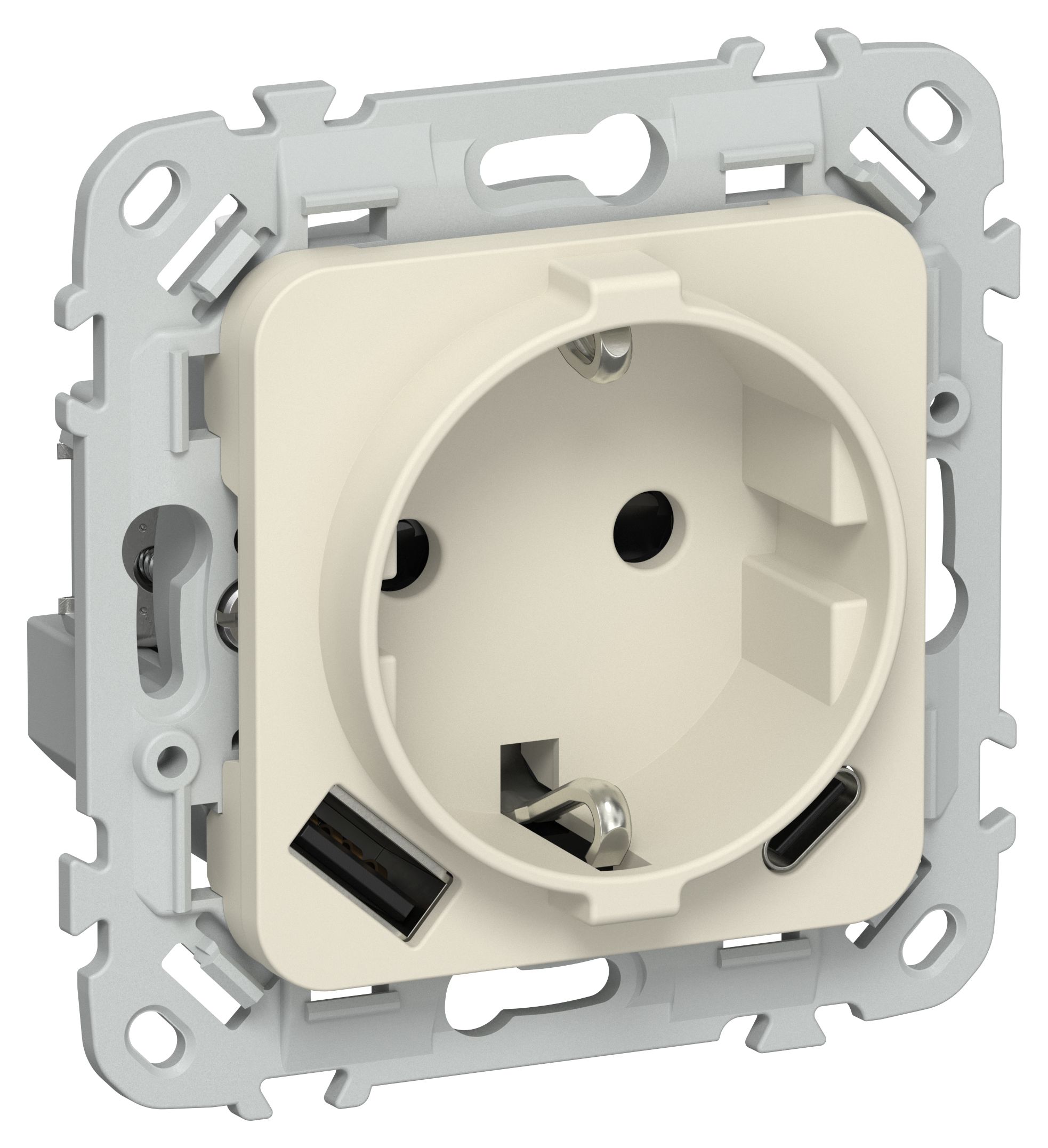 FLITE Роз.с з/к/ш 16А USB AC 20Вт б/к РСЮшс11-1-ФлСл сл IEK