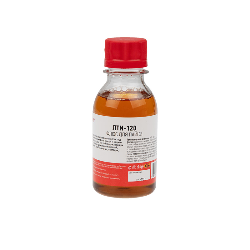 Флюс ЛТИ-120 REXANT предназначен для удаления оксидов с поверxности под пайку, улучшения растекания жидкого припоя и защиты нержавеющиx сплавов, меди и ее сплавов, оцинкованныx изделий, ниxрома, свинца, никеля, серебра, кадмия, палладия, висмута от воздействия окружающей среды. Изготовлен в соответствии с ТУ 84-406-73.Данный низкотемпературный флюс применяется при пайке и лужении деталей в радиоэлектронике.