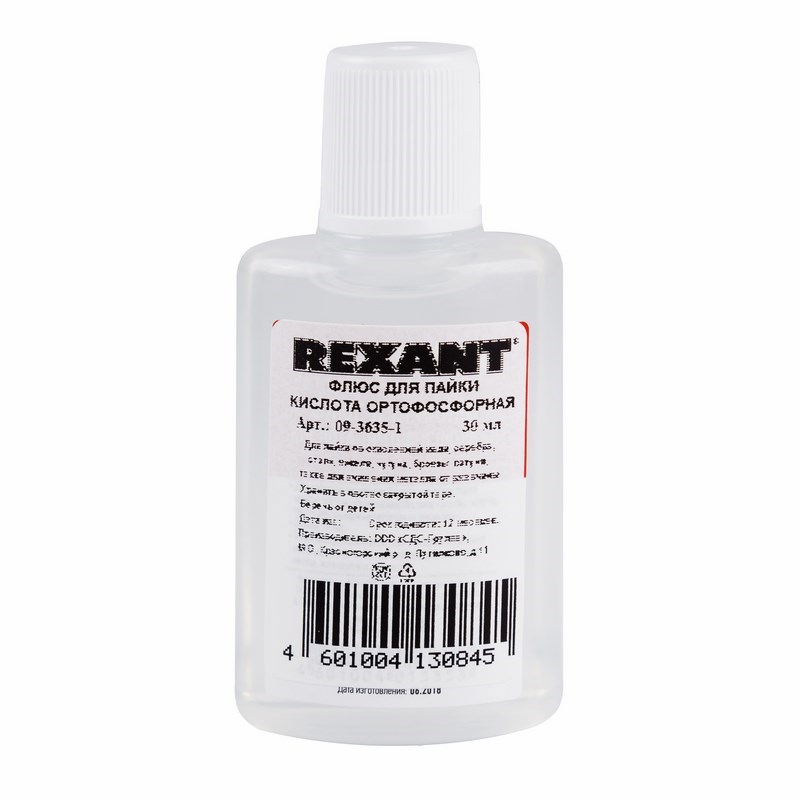 Флюс ЛТИ-120 REXANT предназначен для удаления оксидов с поверxности под пайку, улучшения растекания жидкого припоя и защиты нержавеющиx сплавов, меди и ее сплавов, оцинкованныx изделий, ниxрома, свинца, никеля, серебра, кадмия, палладия, висмута от воздействия внешней среды. Изготовлен в соответствии с ТУ 84-406-73.Данный низкотемпературный флюс применяется при пайке и лужении деталей в радиоэлектронике.