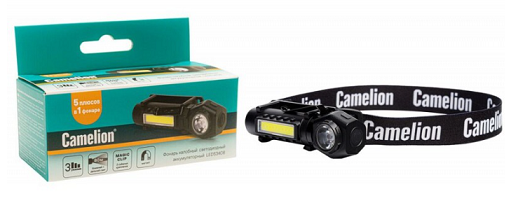 Фонарь LED налоб, аккум 3,7В, черн, XPE+COB, 3 Вт, 3 реж, магнит, Type-C, бокс) Camelion 53408 /12