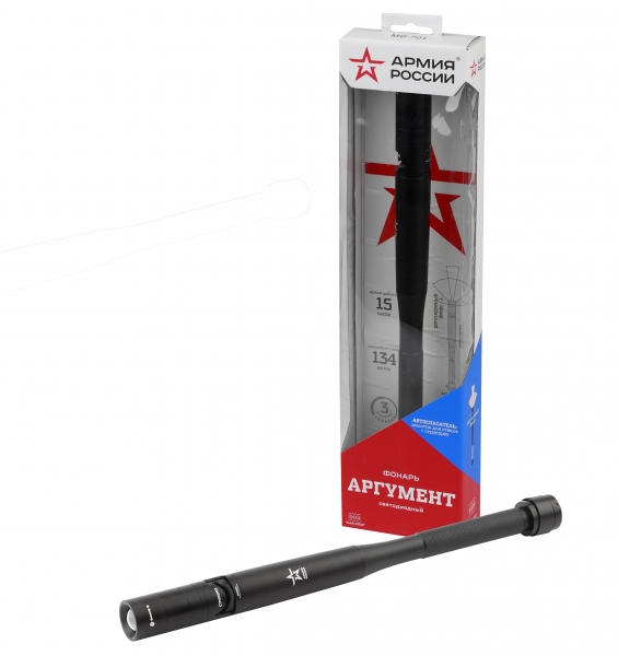 ЭРА Армия России Аргумент - мощный фонарь-автоспасатель со стропорезом и молотком для стекла. Один из самых необычных фонарей на современном рынке. Представитель уникальной совместной серии бренда ЭРА и АО "Военторг" (действующего на основе лицензии Министерства обороны РФ), этот яркий качественный фонарь снабжён стропорезом и молотком для стекла. Такой функционал позволяет использовать его как автоспасатель. Актуальный практичный гаджет, который должен быть в автомобиле каждого мужчины. Особая конструкция и прочность корпуса позволяют применять ЭРА Армия России Аргумент для самозащиты. Фонарь упакован в картонную подарочную коробку в узнаваемой стилистике бренда "Армия России". Фирменная звезда "Армия России" - и на корпусе самого фонаря. Высокое качество освещения: сверхдальность (134 метра), оптимальный световой поток (200 лм), регулируемый фокус (дальний направленный, средний и ближний заливающий свет). Фонарь ЭРА Армия России Аргумент работает от 4 пальчиковых батареек - это 15 часов качественного света. Благодаря эргономичной конструкции, его удобно и приятно держать в руках.