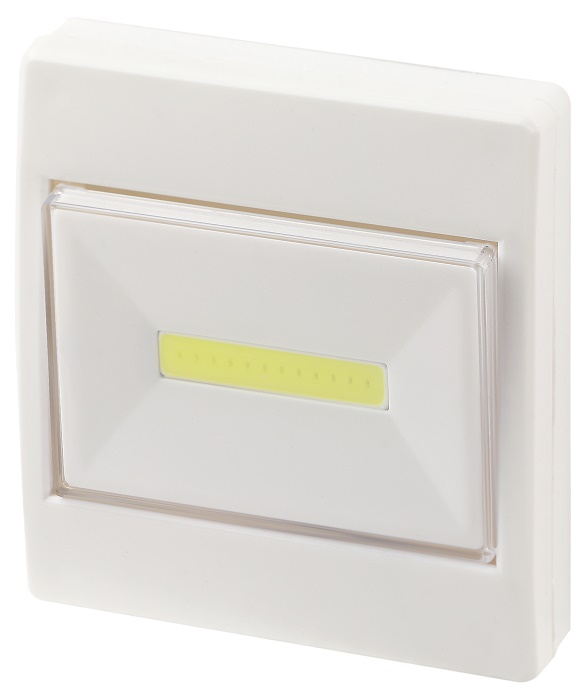 ТРОФИ SB-102 - светодиодный фонарь-подсветка в форме выключателя. Прост в установке и удобен в применении. Два типа крепления - ушко для подвешивания и двойная липучка для монтажа без сверления. Работает от 3 мизинчиковых батареек (3 х ААА). Дает возможность организовать яркую подсветку в любом месте - без привязки к электросети. Включается нажатием на корпус - как обычный выключатель. На кнопке "выключателя" расположена светодиодная плата - именно она создает качественный заливающий свет. Применена новейшая LED-технология - сверхъяркие и суперэкономичные светодиоды COB. Бытовой фонарь-подстветка в аккуратном лаконичном корпусе базового белого цвета универсален для любого интерьера.