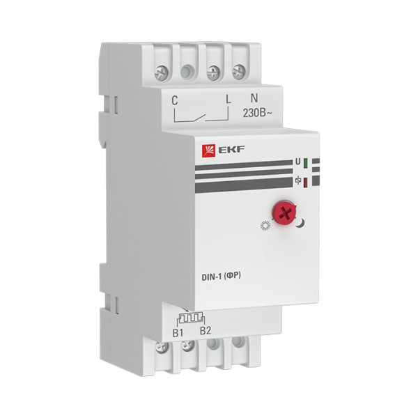Фотореле серии DIN-1 (ФР) предназначены для автоматического контроля (включения или отключения) освещения в зависимости от уровня освещенности. Включение - при снижении освещенности (сумерки) и отключение - при увеличении освещенности (рассвет). Порог срабатывания может быть изменен с помощью регулятора на передней панели (от 2Лк до 100Лк). Преимущества: Датчик в комплекте Максимальный ток нагрузки, 25А Широкий диапазон регулировки освещенности Модульное исполнение на DIN-рейку