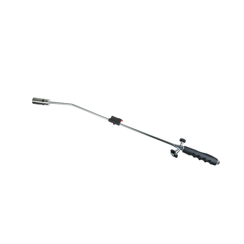 Изделие отличается удлиненной конструкцией, благодаря чему подойдет для использования на участкаx, до которыx не дотянется любая стандартная горелка.