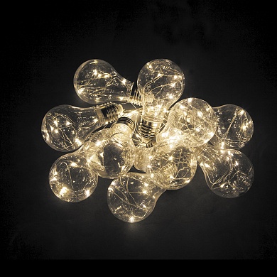 Гирлянда фигурная от батареек FERON CL580, 10LED, 2700К (теплый белый), статичная (постоянного свечения), 3м+0,5м прозрачный шнур, расстояние между лампами 30см, IP20, 6W, на батарейках 3*АА, батарейки отсутствуют в комплекте, последовательное подключение - НЕТ