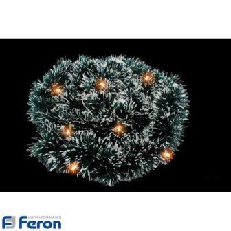 Гирлянда "мишура красная" 2м + шнур 0,3м, 20 LED, теплый белый, 230V IP20, CL80 FERON /12