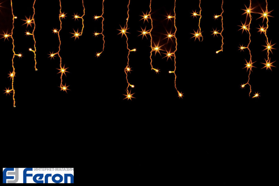Гирлянда бахрома FERON CL14, 70LED, 2700К (теплый белый), статичная (постоянного свечения), 1,4м+1,4м прозрачный шнур, расстояние между лампами 5см, IP20, 4W, от сети 230V, последовательное подключение - НЕТ