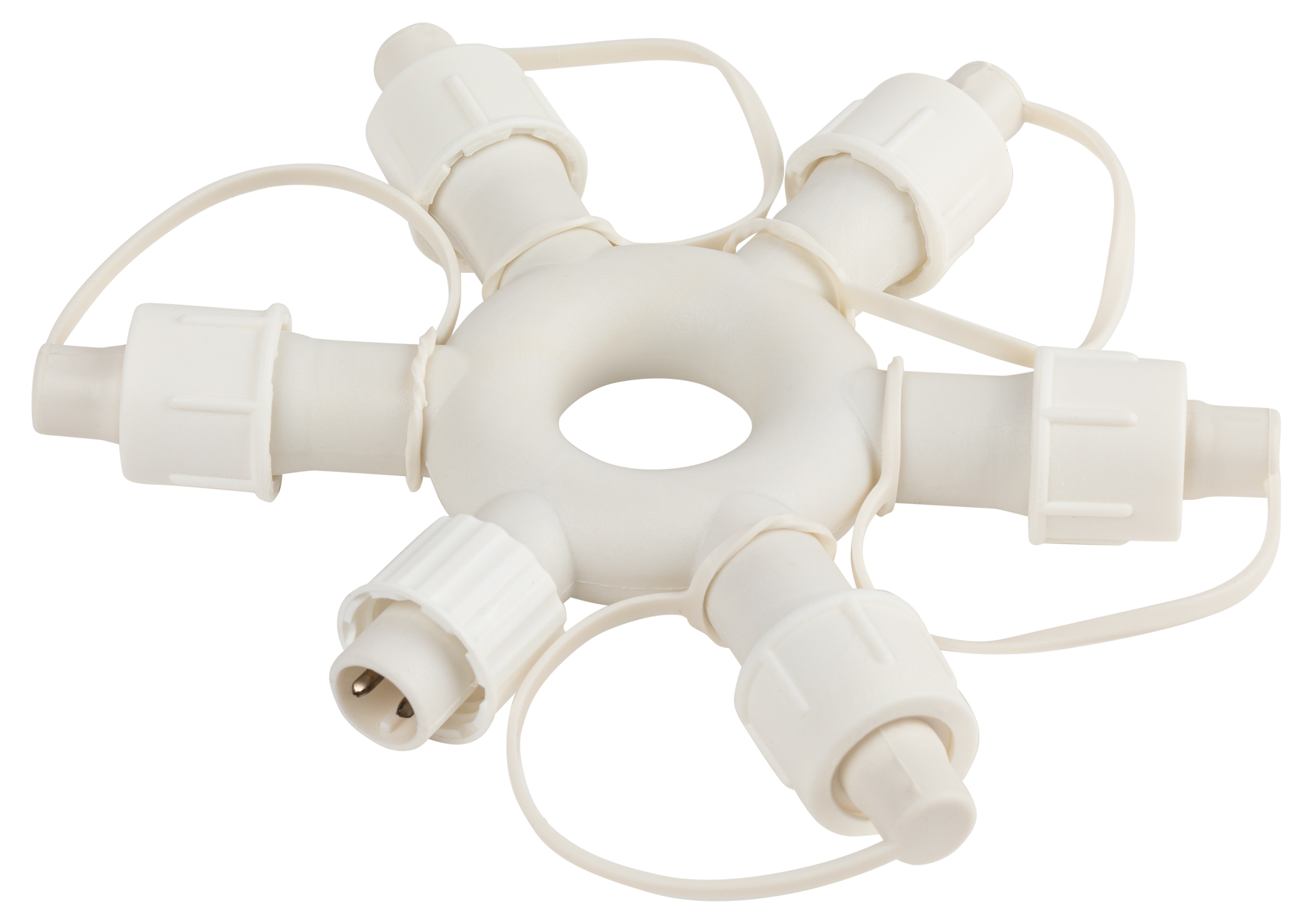 Разветвитель для гирлянд ЭРА подойдет для любого праздника. С помощью него можно создать настоящие произведения искуства из гирлянд. Разветвитель выполнен в виде кольца - снежинки и имеет 6 выходов. Он подойдет для внутреннего декорирования дома или наружной иллюминации под навесом. Степень защиты - IP44. Такая степень защиты предполагает использование прибора во влажных помещениях, где на него может воздействовать пар. Диаметр кольца составляет 13 см. Корпус разветвителя выполнен из материала ПВХ. В качестве дополнительной защиты каждый из коннекторов дополнен заглушкой, которую можно применить, если выход не используется. Купив разветвитель для гирлянд ЭРА, вы останетесь довольны и сможете создать праздничную атмосферу в доме.