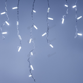 Светодиодная бахрома Pro. Размер 4000 мм (длина 4000 мм, по длине 32 нити высотой 200/600 мм). Количество светодиодов 128 шт размером 7 мм. Основной цвет свечения БЕЛЫЙ (6000 К), эффект мерцания редких точек БЕЛЫЙ (6000К) с резким световым рисунком (прозрачная вогнутая линза), соотношение светодиодов: 106 белых постоянного свечения / 22 белых с мерцанием. Эффект частого мерцания. Провод белый, каучук. Питание 230 В, Мощность 6 Вт, защита IP65, применение на улице под навесом. Аксессуары для подключения приобретаются отдельно.