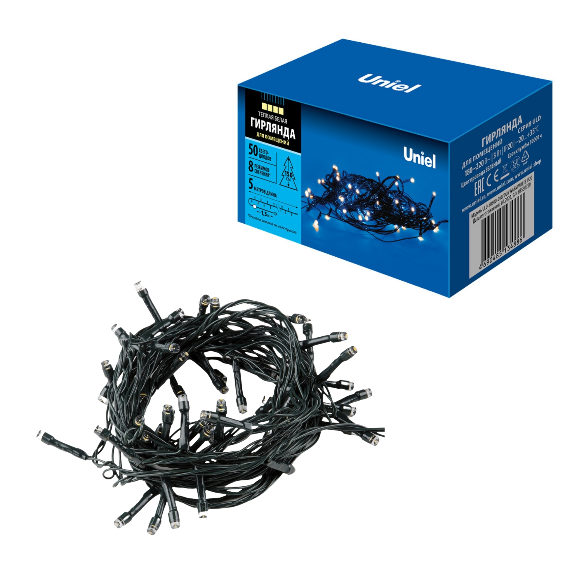 Гирлянда 50 LED 5м IP20 Теплый белый свет. Провод зеленый ULD-S0500-050/DGA WARM WHITE IP20