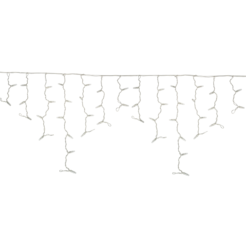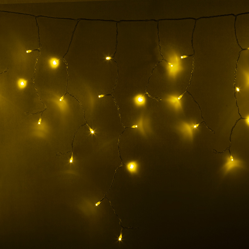 Гирлянда имитирует сосульки и может послужить оригинальным решением при украшении карнизов, арок, фасадов зданий, витрин магазинов, а также стать эффектным элементом декора внутри помещений.