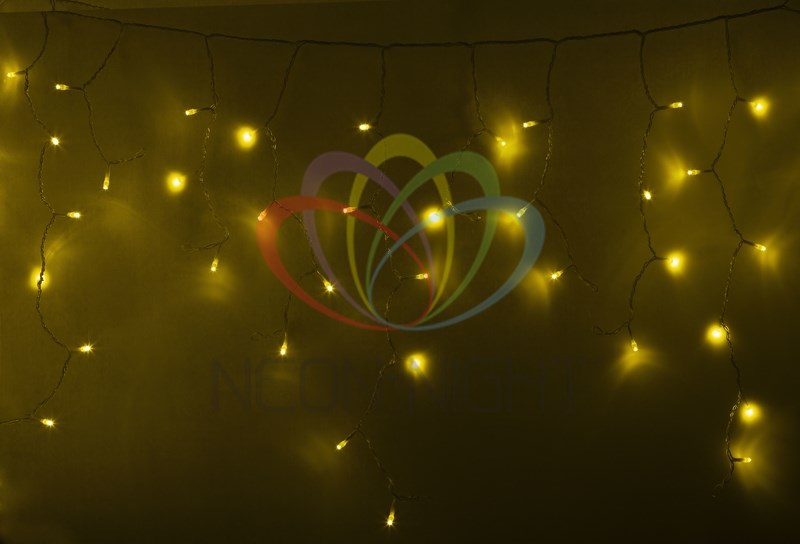 Гирлянда "Айсикл" (бахрома) 4,8х0,6м, 176 LED, Желтый, 230 В, IP65, Прозрачный ПВХ, NEON-NIGHT 1/20