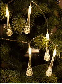 Гирлянда Капельки 10LED, 1,8+0,3 м, 2х1.5В теплый белый, акрил Космос