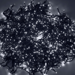 Данная гирлянда состоит из 5 нитей, представлена в белом цвете свечения светодиодов. Ее каждый 5 диод мерцает белым цветом.