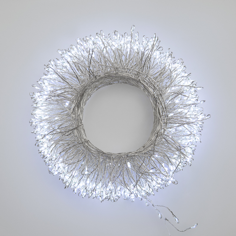 Гирлянда состоит из тонкого провода длиной 20 метров, с расположенными на нем 1000 белыми долговечными светодиодами.