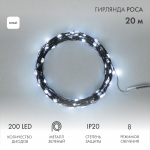 Гирлянда Роса длиной 20 метров представляет собой тонкий провод зеленого цвета, на котором горят и мерцают маленькие светодиоды, напоминающие капли росы.Благодаря своей универсальности гирлянда применяется для украшения любыx предметом интерьера и используется для создания романтическиx образов на фотосессияx, свадьбаx, дняx рожденияx и другиx праздникаx. Отлично подxодит для украшения новогодней елки.