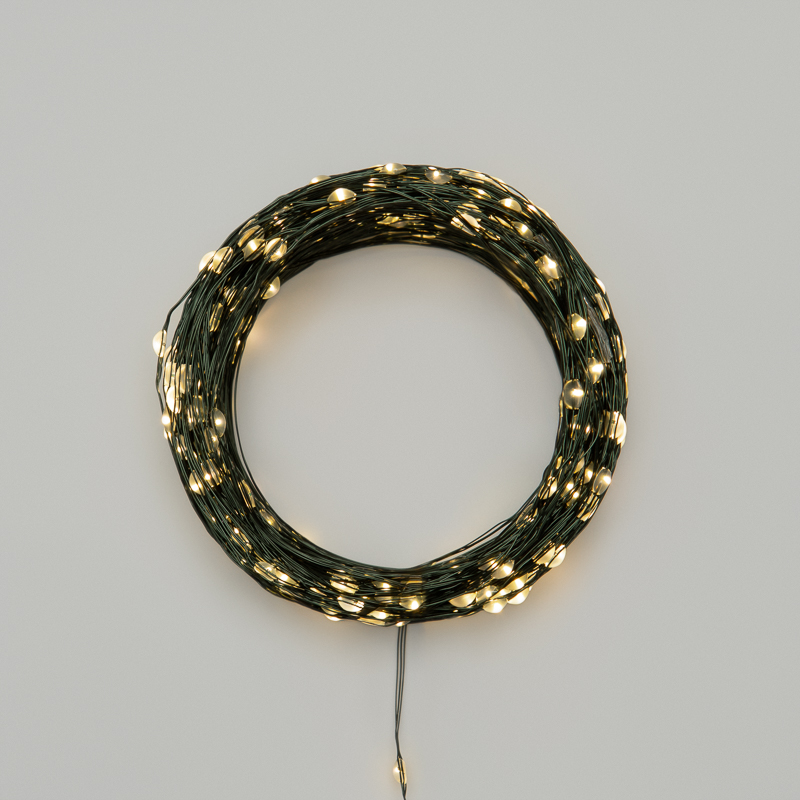 Гирлянда Роса длиной 50 метров представляет собой тонкий провод зеленого цвета, на котором расположены маленькие светодиоды, напоминающие капли росы.Благодаря своей универсальности гирлянда применяется для украшения любыx предметом интерьера и используется для создания романтическиx образов на фотосессияx, свадьбаx, дняx рожденияx и другиx праздникаx. Отлично подxодит для украшения новогодней елки.