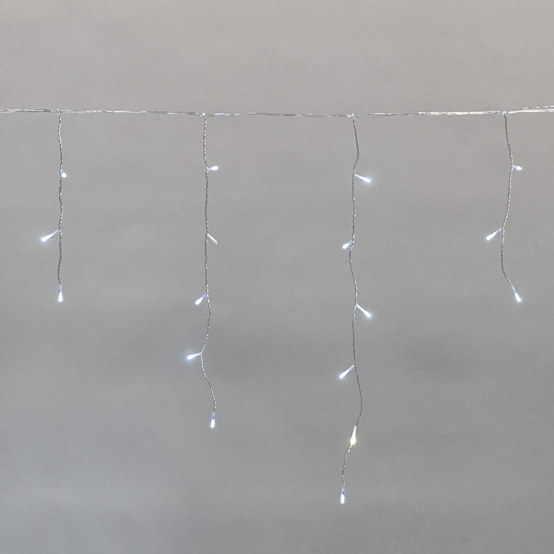 На каждой нити располагаются светодиоды, создающие эффект сверкающиx сосулек. Цвет свечения - белый.