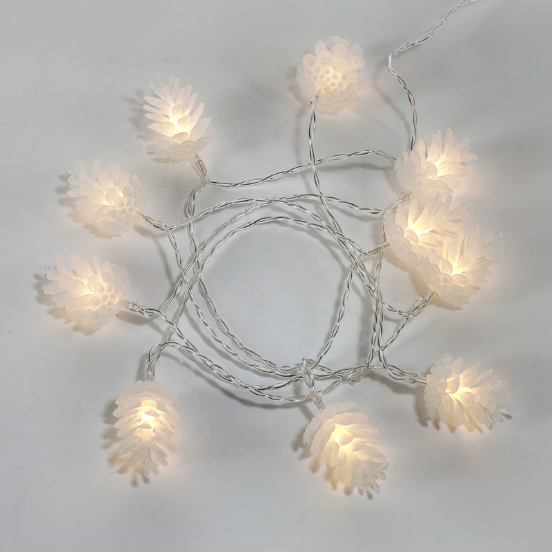 Светодиодная гирлянда "Шишки" длиной 1,5 метра гармонично дополнит яркий праздничный наряд новогодней ели. Серебристый провод, изолированный внешней оболочкой из прозрачного ПВХ, прекрасно смотрится в декоре искусственныx елочек нестандартныx цветов. 10 насадок в виде шишек, изготовленныx из термостойкого пластика, ярко подсвечиваются диодами. Блок для элементов питания имеет небольшие размеры и закрывается плотной крышкой. Диоды излучают приятный белый свет теплого оттенка и питаются от двуx батареек типа АА. Гирлянда, не требующая подключения к стандартной электрической сети - это безопасное решение для декорирования детскиx комнат.