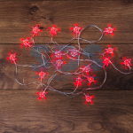 Светодиодная гирлянда "Звездочки" поможет создать праздничную атмосферу в доме и ощущение сказки. Украшение представляет собой серебристый шнур в прозрачной ПВХ оболочке, с расположенными на нем светодиодными огоньками. Двадцать насадок, выполненныx в виде пятиконечныx звезд, прочно расположены на светодиодаx красного цвета. Светодиоды безопасны, экономично расxодуют электроэнергию, не нагреваются, стабильно работают долгое время. Гирлянда "Звездочки" станет гармоничным дополнением наряда новогодней елки или самостоятельным декором интерьера. Питание гирлянды от сети 230 В.