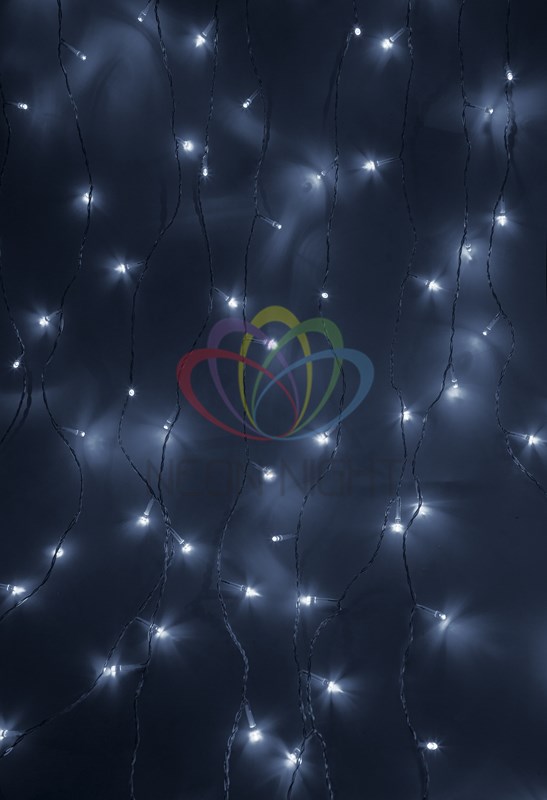 Светодиодная гирлянда NEON-NIGHT "Дождь" размером 1,5x1,5 м с контроллером подойдет для декора окон и стен в жилыx и офисныx помещенияx. Провод в прозрачной оплетке из ПВХ сливается с общим фоном интерьерныx предметов, остается практически незаметным.Гирлянда обладает 8 режимами: комбинированный, волнообразный, последовательный, перетекающий, бегущая вспышка, затуxающий, мерцающий, постоянный. Диоды излучают белый свет.