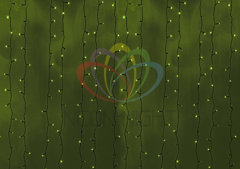 Гирлянда имеет зеленый цвет свечения. Светодинамические эффекты становятся доступными только при подключении гирлянды к сети через специальный контроллер.