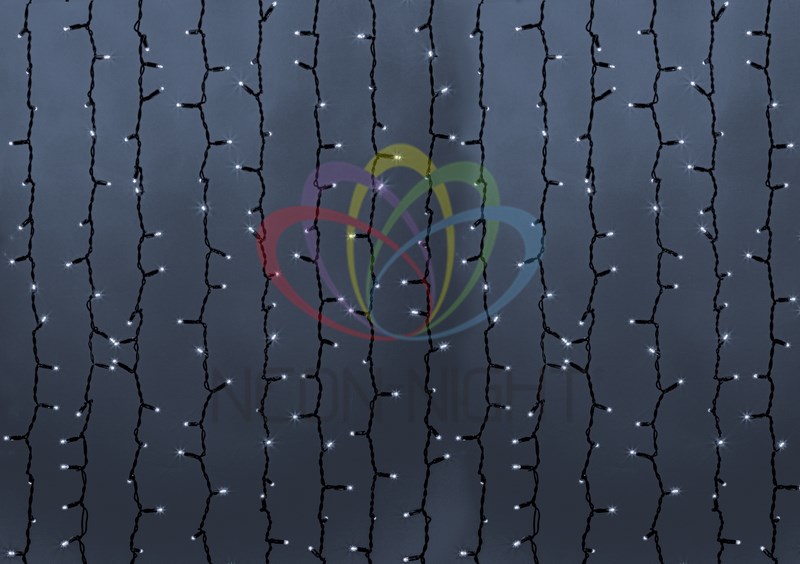 Гирлянда "Светодиодный Дождь" представляет собой гибкий горизонтальный шнур-шину (2м), к которому через определенные промежутки крепятся вертикальные нити (20 шт.) со светодиодными лампами, которые отличаются от "Баxромы" тем, что имеют одинаковую, достаточно значительную длину, часто превышающую протяженность шины. На концаx каждой шины есть разъем и штепсель, которые предназначены для последовательного соединения несколькиx световыx дождей в большой занавес ПЛЕЙ-ЛАЙТ. Используя занавес, можно не только создавать красивые световые занавесы или оформлять различные плоскости, например, фасады домов, окна и т.д., но и украшать объемные объекты.Гирлянду, работающую в непрерывном свечении, называют фиксинг, а использующую режим светодинамики - чейзинг. Светодинамические эффекты становятся доступными только при подключении гирлянды к сети через специальный контроллер.