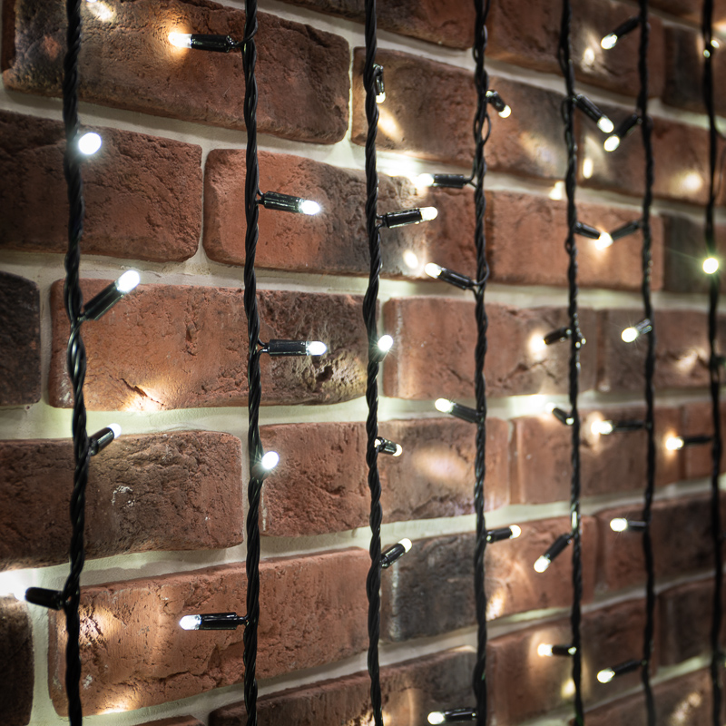 Гирлянда имеет белый цвет свечения и обладает эффектом водопада.