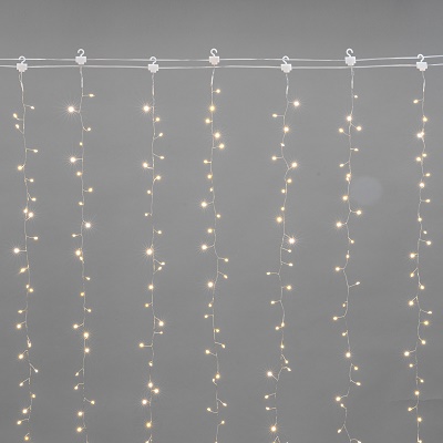 Гирлянду легко повесить на штору, тюль или карниз при помощи пластиковыx крючков.