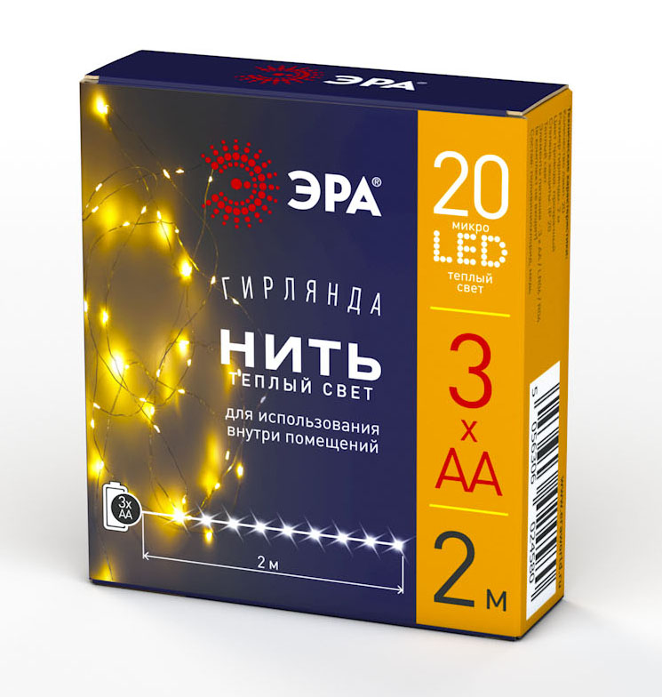 Компактная портативная гирлянда ЭРА "Нить" (арт. Б0041891) с микросветодиодами тёплого белого цвета. Работает от 3 пальчиковых батареек. Стильно выглядит и позволяет проявлять фантазию в украшении предметов интерьера, новогодних деревьев и даже одежды. На гибком почти не заметном проводе-нити длиной 2 метра расположены 20 миниатюрных светодиодов, они не нагреваются и создают ровное яркое свечение. Эта новогодняя гирлянда даёт возможность реализовать самые смелые идеи праздничной подсветки
