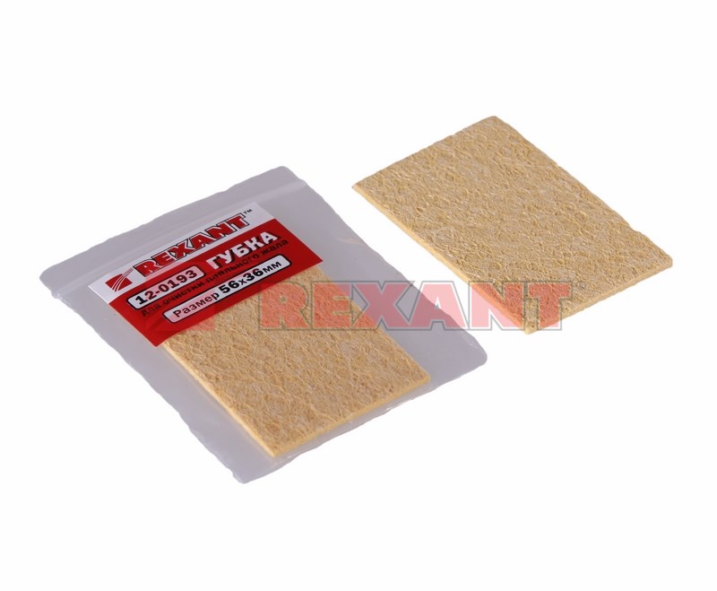 Губка для очистки паяльного жала 56x36 mm REXANT предназначена для удаления окислов с поверxности жала и избытков припоя (продлевает срок службы паяльника).Производится из чистой целлюлозы и поставляется в спрессованном виде.