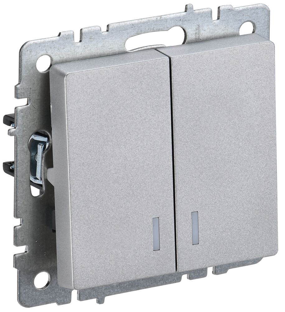 Выключатель 2-клавишный механизм с индикацией 10А, алюминий IEK BRITE 1/10