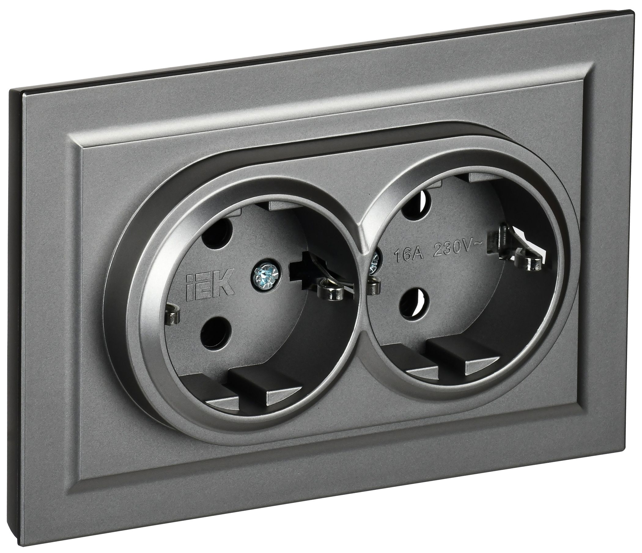 Розетка 2-я с з/к без з/ш 16А в сборе Сталь IEK BRITE 1/100